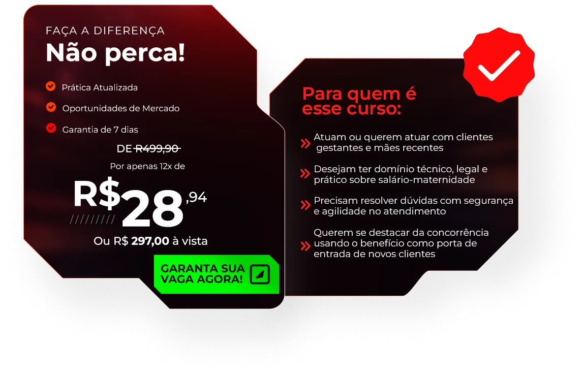 Não é apenas teoria. É o passo a passo para sair do achismo e se tornar referência em Salário-Maternidade.